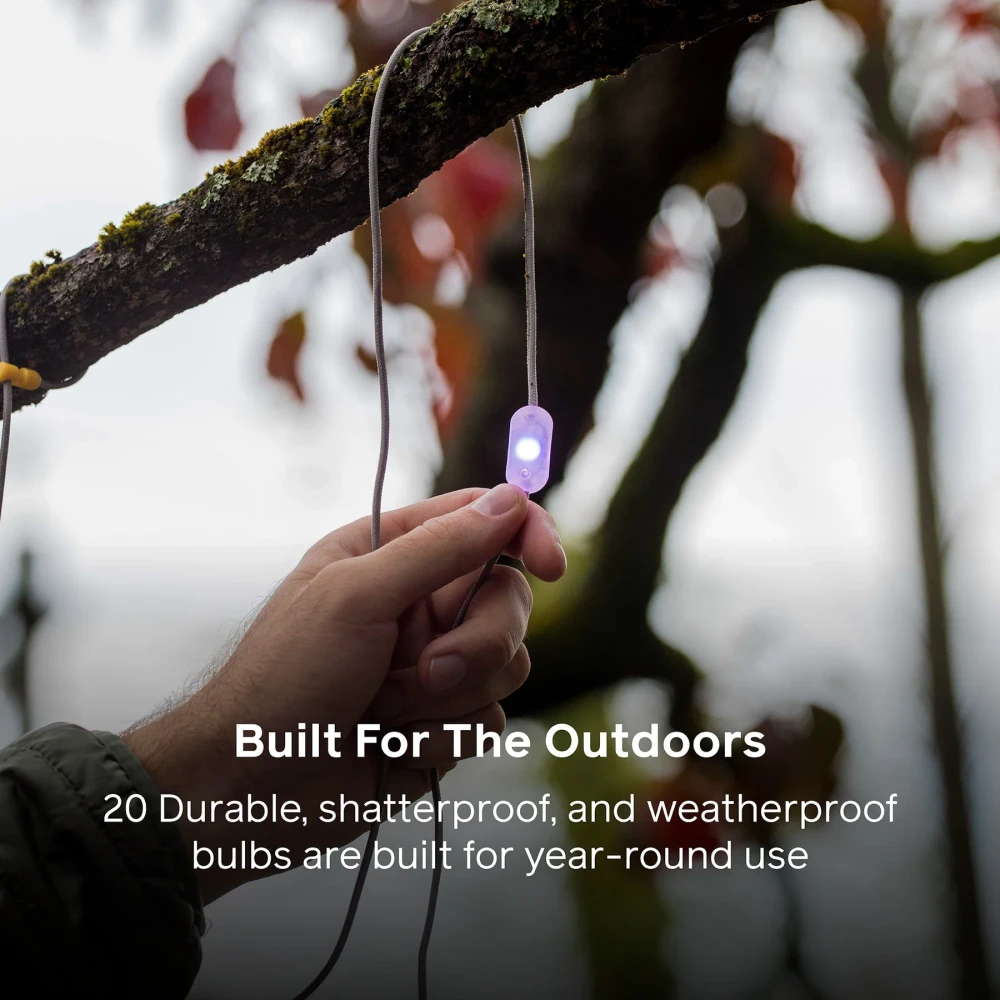 Powerful and expansive, Solar String Lights provide up to 40 hours of light on a single charge. With its completely detachable unit, you can remove and recharge the unit, all while leaving your string setup intact. Featuring a 44 ft nylon-braided cord, 20 shatterproof bulbs, and a detachable 4,000 mAh rechargeable battery, these solar string lights provide illumination and ambiance to any outdoor space.