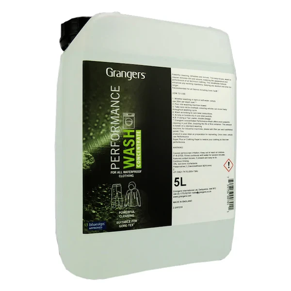 Grangers Performance Wash is now available in 5L, making it ideal for washing several waterproof articles in bulk.