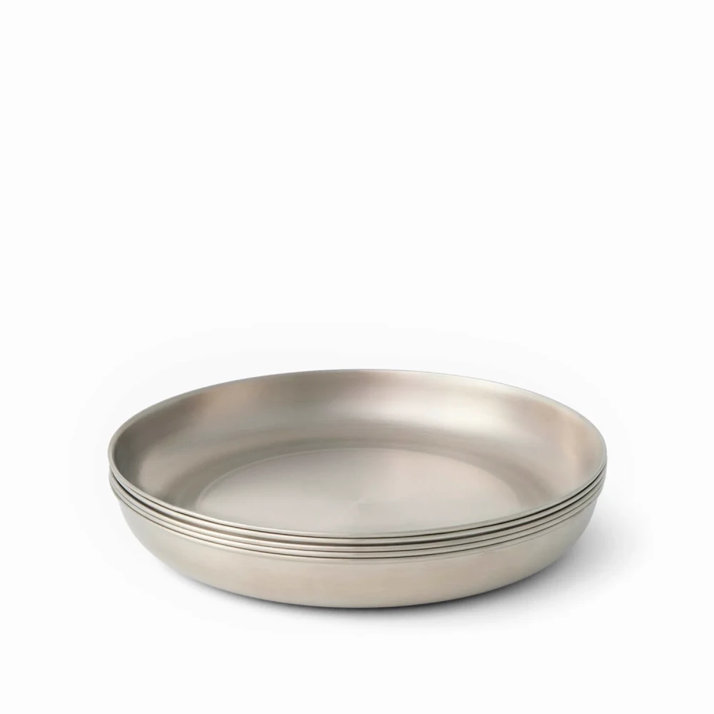 The polished stainless steel surface of the Detour Plate makes it not only super durable but also easy to clean. The innovative plate design allows for easy stacking, while the curve between the base and sidewalls perfectly matches Sea to Summit spoons so you can enjoy every last morsel. The silicone rubber insert in the base means the plates will not slide or rattle during transport and the generous 1000 ml  volume is ideal for hearty meals and hungry campers.