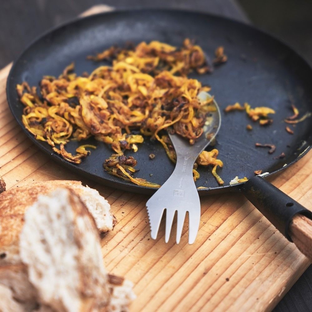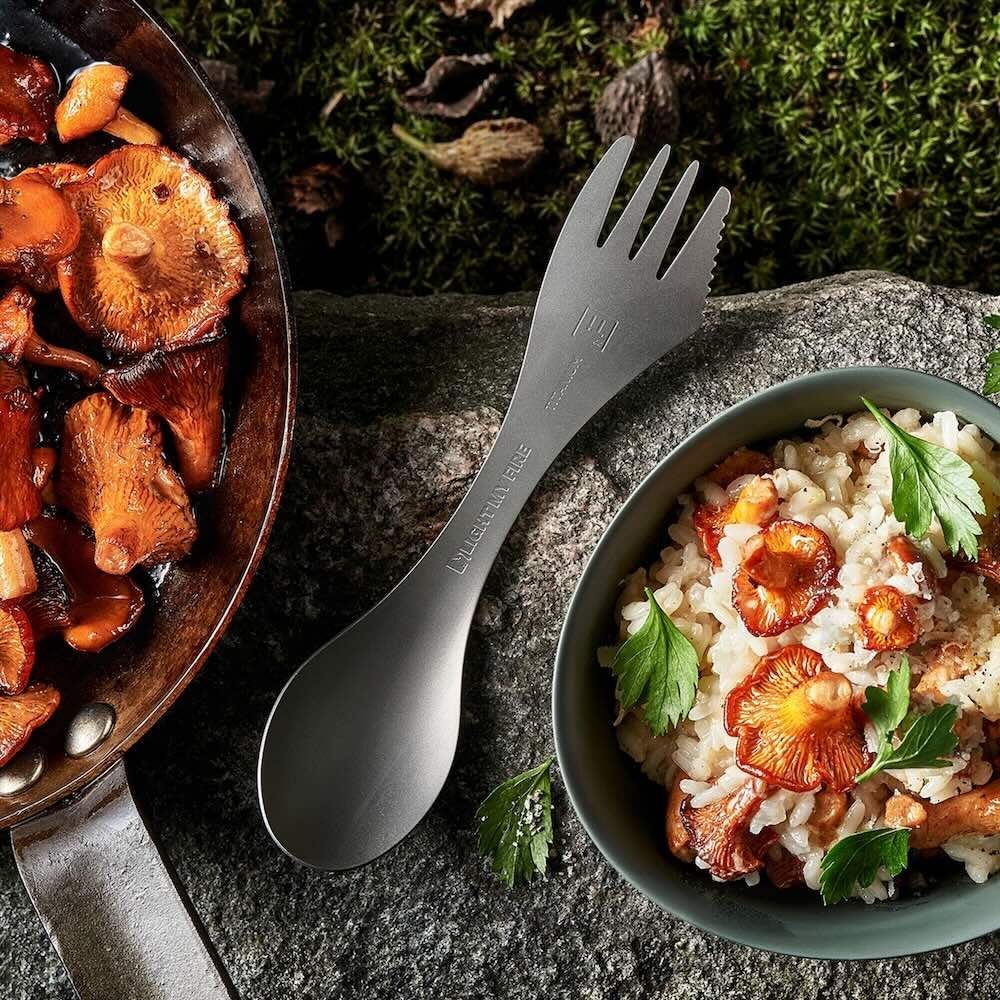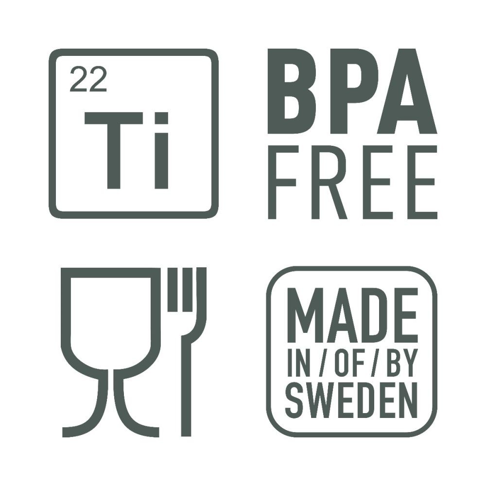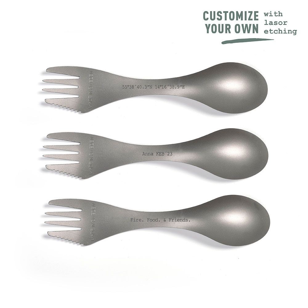 Ikooniline lusika–kahvli–noa kombinatsioon on valmistatud kergekaalulisest ja vastupidavast titaanist, mis peab vastu aastaid.